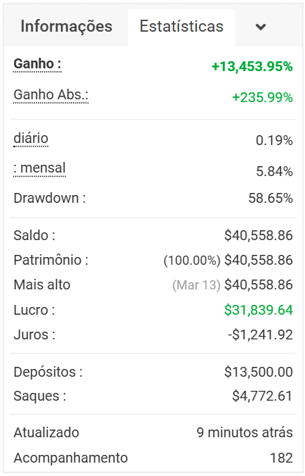 Tem operações matadoras, e sempre tá entregando performance, só as vezes fica um pouco negativo, mas é normal...mercado é mercado, importante que está automatizado.