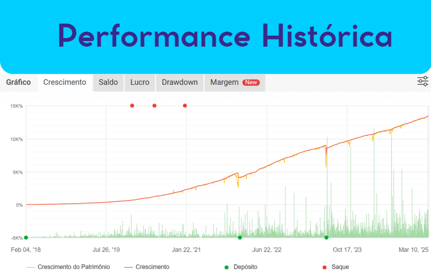 Utilizamos algoritmos avançados com estratégias comprovadas e mais de 10 anos de backtest — tudo desenvolvido para trazer ao varejo o que antes era privilégio dos grandes fundos e bancos.